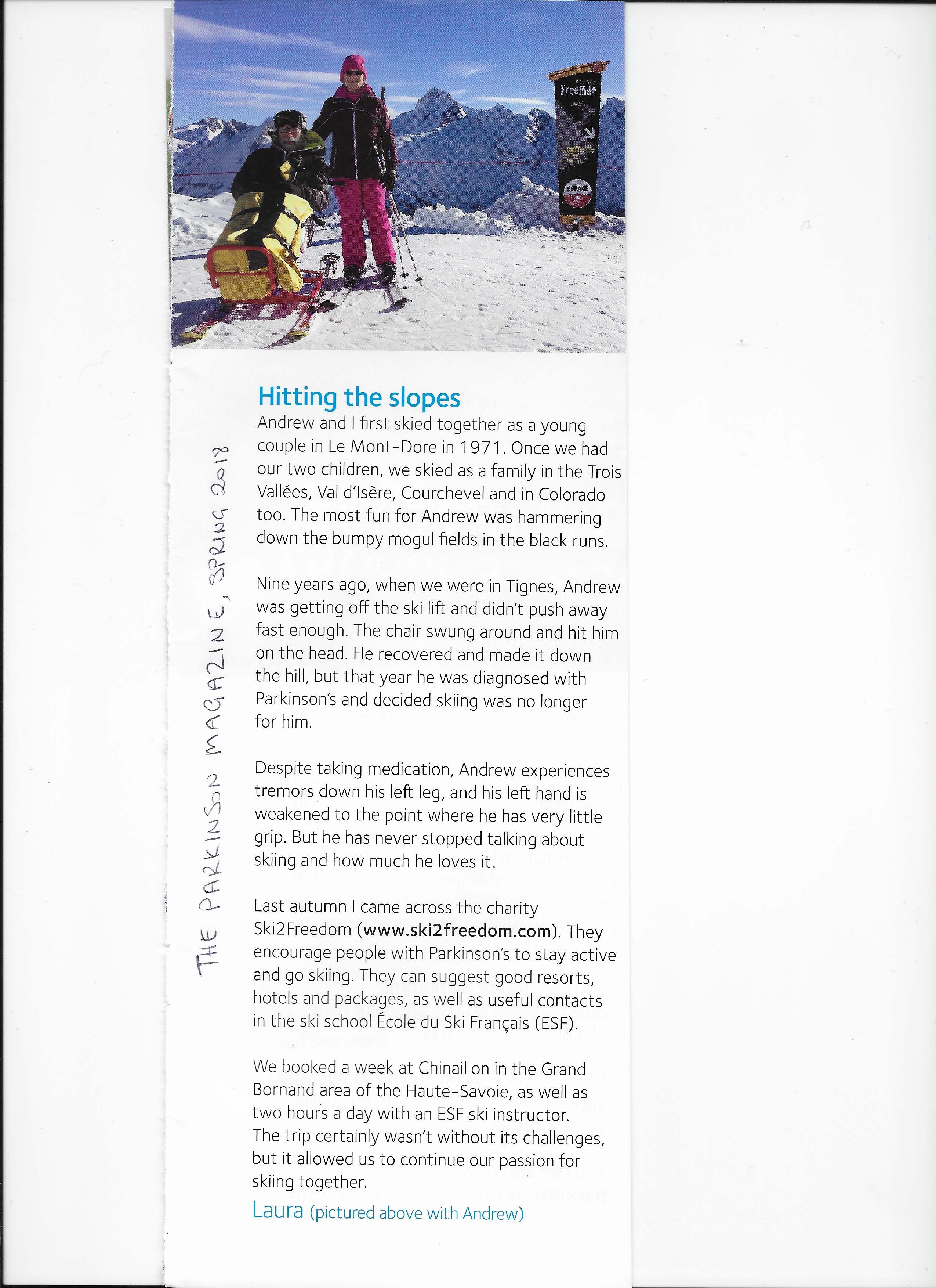 Hitting the slopes............ a fabulous article written by Laura Collins for The Parkinson Magazine's Spring 2018 edition about how nothing really gets in the way of a family ski holiday. Just a bit of advance planning and finding the right ski guide and equipment and most of the challenges can be overcome! click here for the full article.........